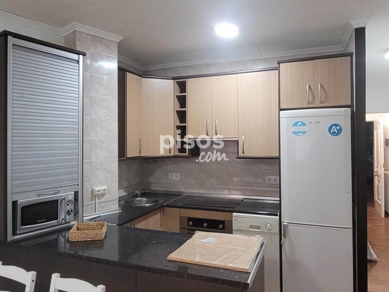 Salón luminoso con cocina americana totalmente equipada: vitrocerámica, lavavajillas, lavadora y menaje.