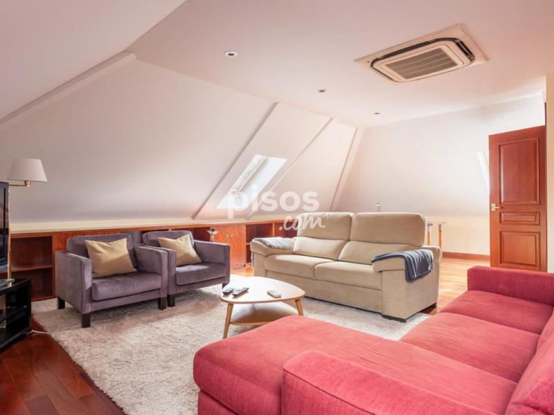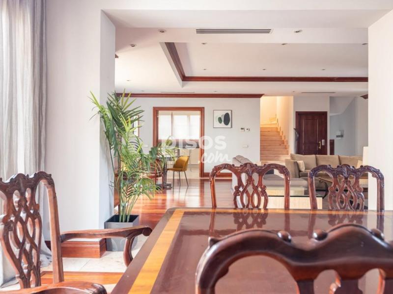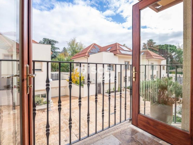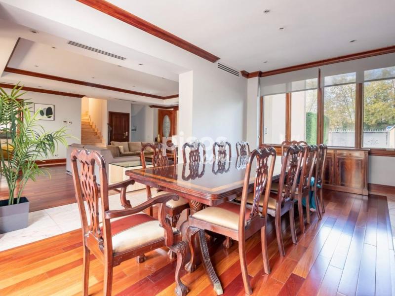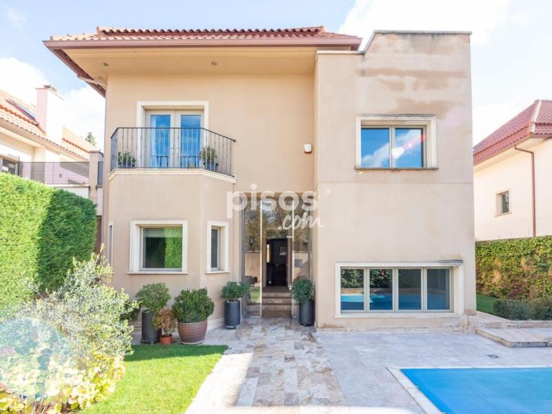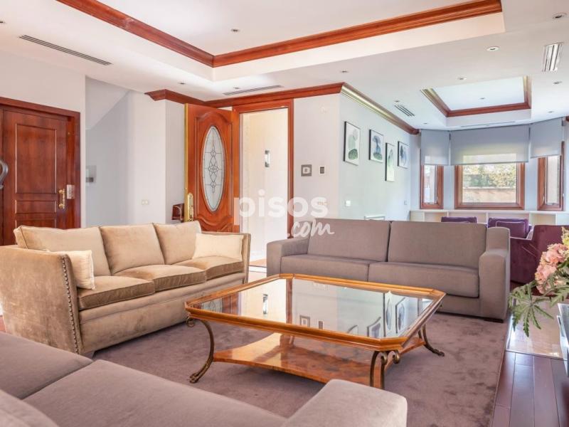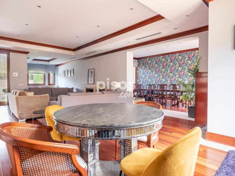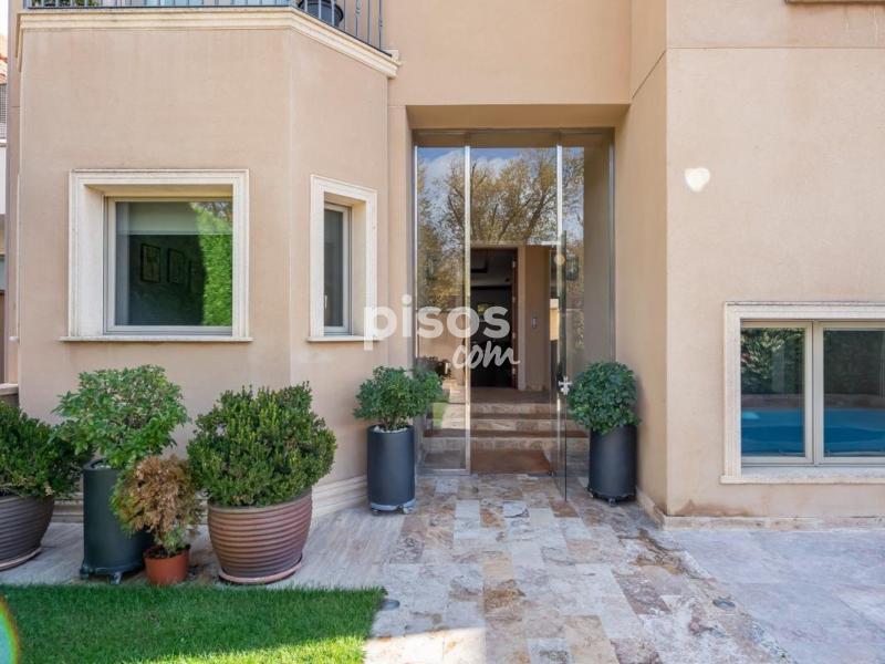 Magnífica vivienda unifamiliar situada en una de las zonas más prestigiosas y residenciales de Madrid: la Colonia Puerta de Hierro. Construida con materiales de alta calidad y mantenida en estado impecable, esta propiedad combina elegancia, amplitud y comodidad. Se distribuye en cuatro plantas, todas ellas comunicadas por un ascensor interior, ideal para personas mayores o con movilidad reducida. En la planta principal, a la que se accede a través de un elegante porche acristalado, encontramos un amplio salón con varios ambientes, zona de comedor independiente y una moderna cocina con office, completamente equipada. Gracias a sus grandes ventanales, toda la planta disfruta de luz natural y acceso directo al jardín desde cualquier estancia. En las dos entreplantas que conectan con el nivel principal, se ubican dos dormitorios con baño en suite, perfectos para invitados o familiares que deseen mayor privacidad. La primera planta alberga tres amplios dormitorios, todos con baño en suite; dos de ellos con vestidor y acceso a terrazas privadas, ofreciendo espacios luminosos y confortables. En la última planta, una buhardilla totalmente diáfana con baño completo y vestidor ofrece múltiples posibilidades: sala de estar, despacho o dormitorio adicional. La planta sótano cuenta con un dormitorio con baño en suite, zona de lavandería, sala de máquinas y un garaje de grandes dimensiones con capacidad para cuatro vehículos. En el exterior, la vivienda dispone de una zona ajardinada con piscina privada y un amplio porche, accesible desde el salón, el comedor y la cocina, ideal para disfrutar del aire libre durante todo el año. Una propiedad excepcional que ofrece comodidad, accesibilidad, seguridad y elegancia, en un entorno exclusivo y tranquilo, con excelentes comunicaciones con el centro de Madrid.