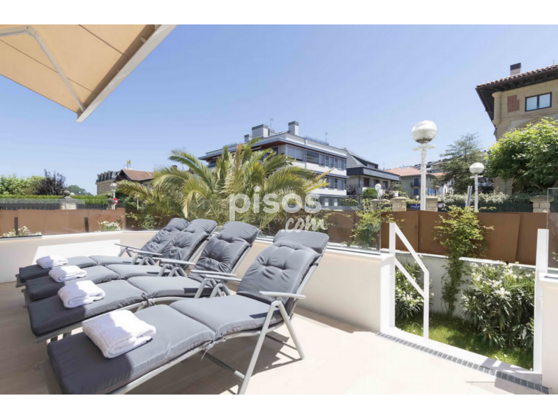 Apartamento único y elegante con una gran terraza en la zona más exclusiva de San Sebastián. A pocos pasos de la playa de Ondarreta, el apartamento es una combinación perfecta. Ubicado en la planta baja de un edificio privado, el apartamento está construido y decorado con maravillosos tonos de la naturaleza con un toque de elegancia. Ubicado a solo unos pasos de la arena blanca y la imagen por excelencia de la bahía de La Concha; experimente unas relajantes vacaciones sin preocupaciones para usted y su familia, en un espacio al que puede llamar hogar. El apartamento tiene una amplia sala de estar con un área de cocina de concepto abierto; el living da a la deslumbrante terraza. La cocina viene con electrodomésticos de alta gama y es perfecta para preparar una deliciosa comida. Además de su brillante interior, el área que rodea el apartamento consiste en un área de lujo justo al lado de la playa de Ondarreta, donde puede disfrutar del acceso a muchos autobuses que conectan a todos los huéspedes con el corazón de la ciudad y el casco antiguo. Los cuatro dormitorios del apartamento cuentan con camas dobles, junto con grandes armarios. Hay tres baños en el apartamento, uno de los cuales es un baño para el dormitorio principal. Cada baño cuenta con maravillosas duchas. También puedes disfrutar de mucho espacio en su terraza.