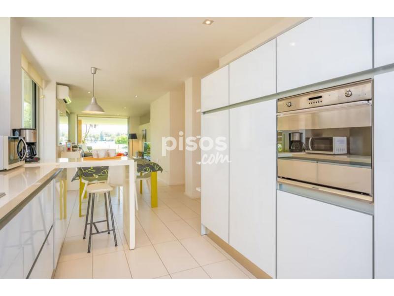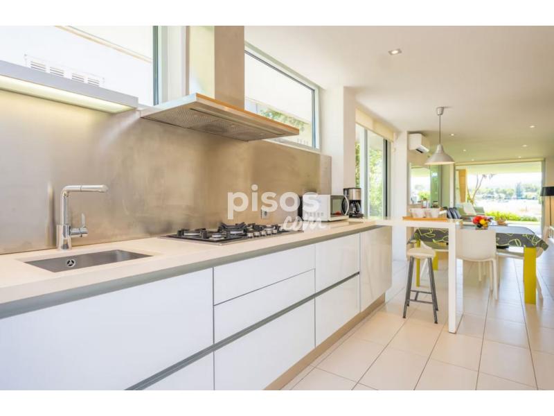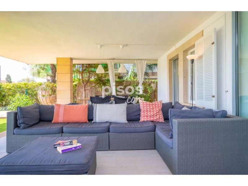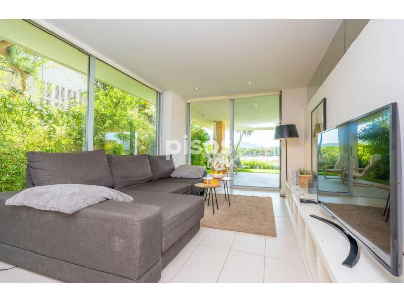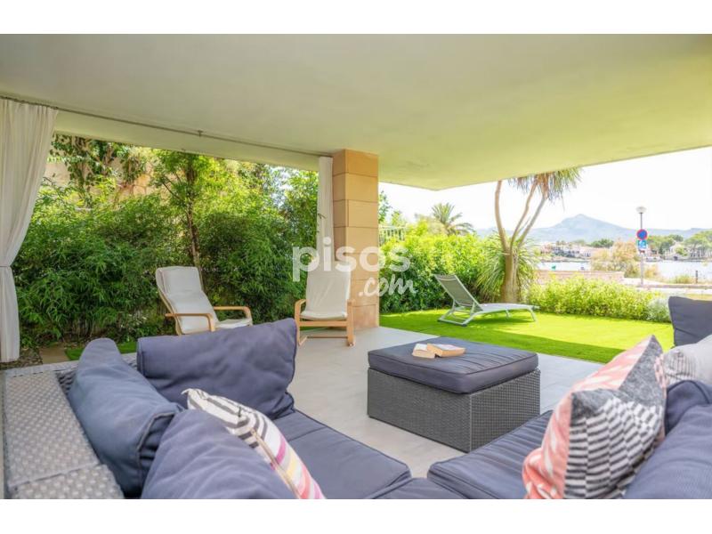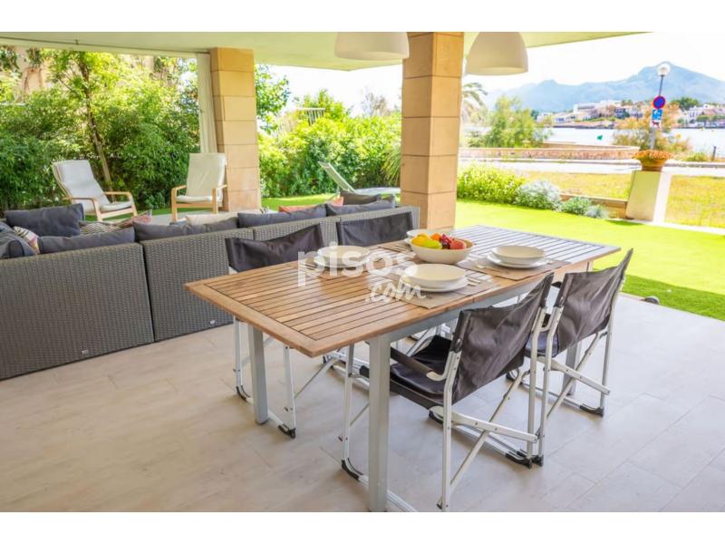 Este coqueto apartamento con aire moderno y con unas espectaculares vistas, se encuentra en Es Barcares en el norte del precioso pueblo de Alcudia. Los exteriores de la casa son perfectos, tiene dos terrazas, una en la parte trasera y otra en la parte delantera con césped artificial y unos sofás increíbles para relajarse mientras observas el mar. También en la terraza hay una mesa para organizar cenas y comidas de verano entre amigos y familia.