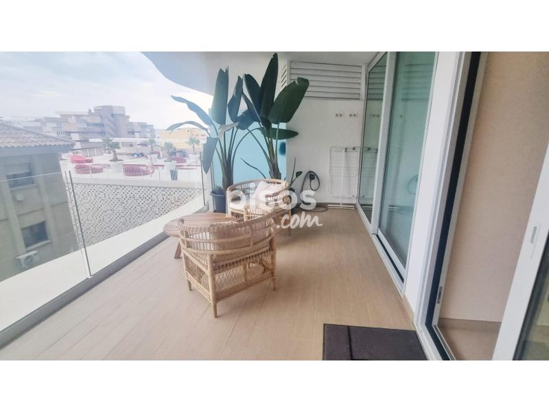 La vivienda está totalmente amueblada y equipada con todos los electrodomésticos, lista para entrar a vivir. Dispone de una amplia terraza con vistas al mar, ideal para disfrutar del aire libre, con mesa de comedor para 6 personas.