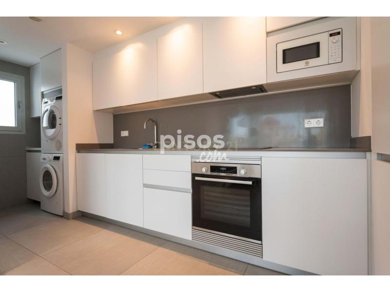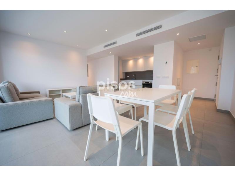 La vivienda, un ático de 110 m², ofrece una distribución funcional y luminosa: tres habitaciones, dos baños y un espacio central donde salón, comedor y cocina se integran de manera fluida.