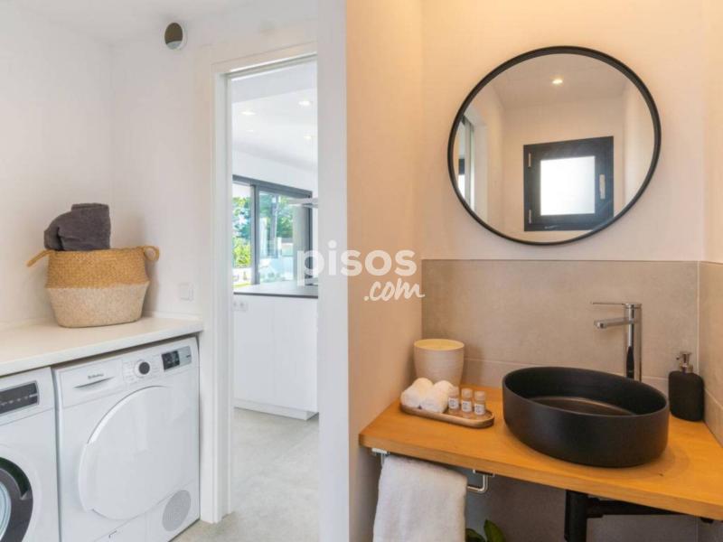 Espacioso y luminoso, completamente reformada, con mobiliario muy bonito y agradable: salón con puerta corredera, ventanal con TV, TV satélite y canales internacionales (pantalla plana), calefacción eléctrica, aire acondicionado y bomba de calor, caliente. Salida a la terraza-jardín, a la piscina. Cocina abierta (horno, lavavajillas, 3 placas de vitrocerámica, tostadora, hervidor de agua eléctrico, microondas, congelador, cafetera eléctrica, isla de cocina) con mesa de comedor, calefacción eléctrica, aire acondicionado y bomba de calor, caliente. Salida a la terraza-jardín, a la piscina. WC separado. Planta superior: 1 dorm. doble con puerta corredera, ventanal con 1 cama de matrimonio (160 cm, 200 cm de longitud), ducha/WC, doble lavabo, calefacción eléctrica, aire acondicionado y bomba de calor, caliente. Salida al balcón. 1 dorm. doble, grande con ventanal con 1 cama de matrimonio (160 cm, 200 cm de longitud), ducha/WC, calefacción eléctrica, aire acondicionado y bomba de calor, caliente. 1 dorm. doble, grande con ventanal con 2 camas (90 cm, 200 cm de longitud), ducha/WC, calefacción eléctrica, aire acondicionado y bomba de calor, caliente. Balcón, terraza-jardín grande, césped, cenador. Muebles de terraza, barbacoa, tumbonas (4), porche. Vista a la localidad. El alojamiento dispone de: lavadora, secadora, plancha, trona, cuna hasta 2 años, secador de pelo. Internet (Wifi, gratis). Plaza de aparcamiento (vallada, 1 coche). Adecuado para familias.