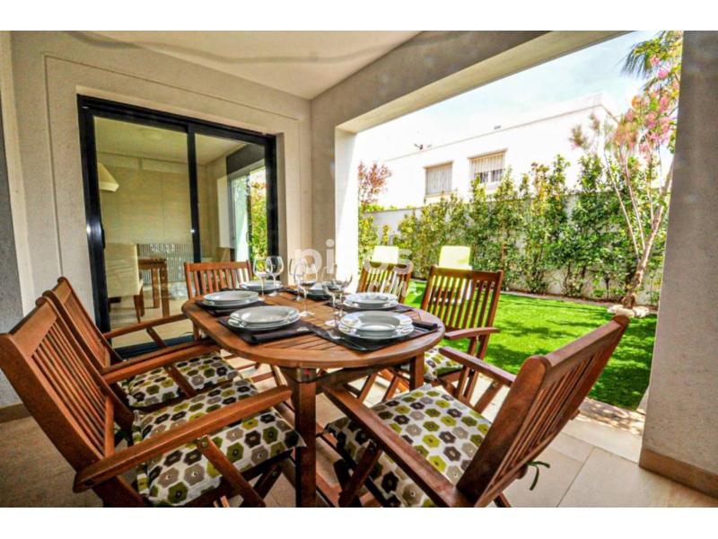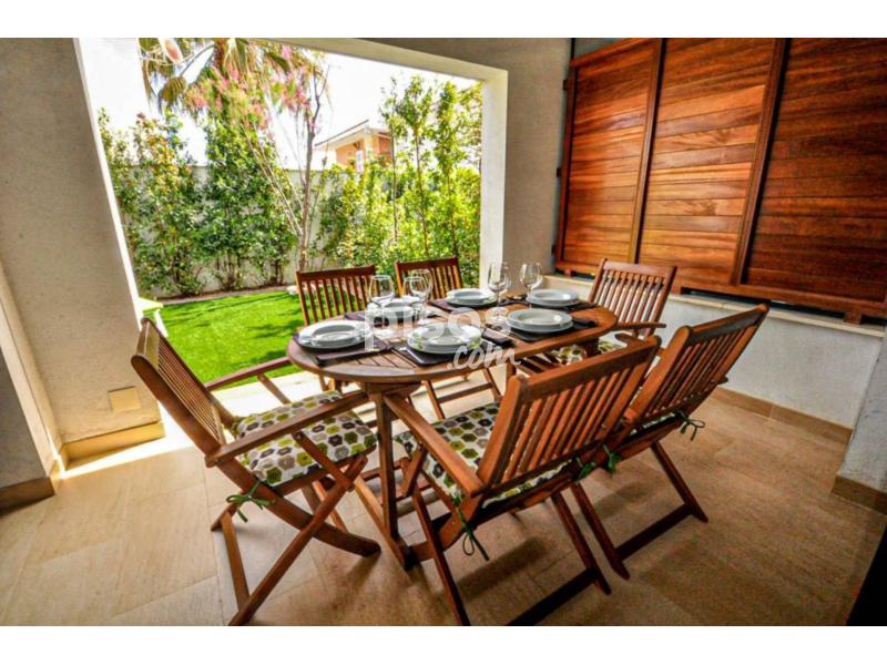 Preciosa casa adosada situada junto al mar en el barrio de la Llosa de Cambrils. Passeig del Mar es un precioso complejo turístico moderno y lujoso situado a pocos metros de la playa de El Dorada. Una zona tranquila, residencial y familia a unos 1.5 km del centro de Cambrils. La casa de vacaciones Passeig del Mar es un alojamiento de distribuido en 2 plantas. En planta baja ofrece 2 habitaciónes dobles, 1 baño completo y una cocina bonita y moderna con todos los electrodomésticos de cocina como horno, microondas, lavavajillas y nevera, además de todos los utensilios para toda la familia. Amplio y moderno salón comedor con salida directa al jardín privado con sillas, mesa . En la primera planta la casa ofrece 1 dormitorio doble y un baño completo .