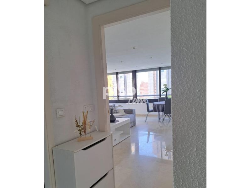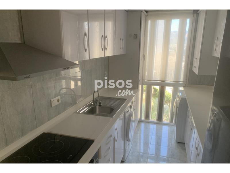 Este piso en alquiler se encuentra situado en la primera planta de un edificio con ascensor y construído hace entre 30 y 50 años, manteniéndose en buen estado de conservación. La vivienda cuenta con 90 metros cuadrados construidos y está amueblada, con dos habitaciones y dos baños, uno de ellos aseo. La cocina está equipada y dispone de aire acondicionado frío y calor para mayor confort.