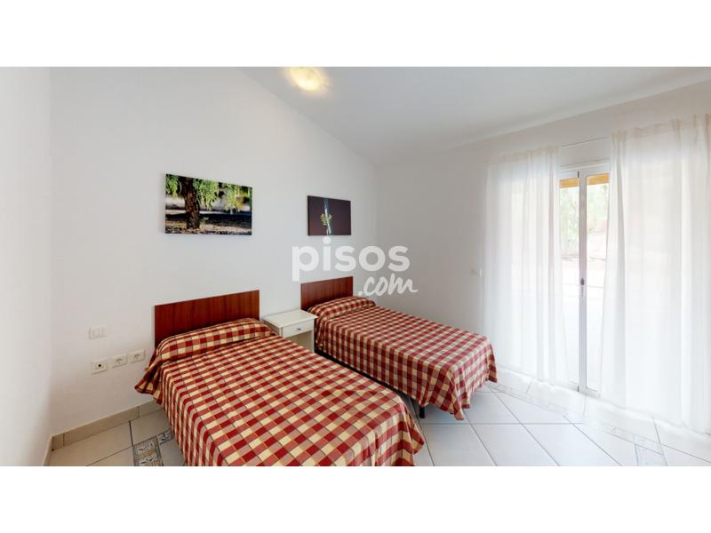 Vivienda adosada en una sola planta con 2 habitaciones, 2 baños, patio y jardín, de 146 m2. Entrando a la vivienda, un amplio recibidor, a mano izquierda el salón-comedor con vistas a las zonas comunes y acceso al patio de 50m2 donde se encuentra la solana equipada con termo eléctrico de 100L y lavadora, más el jardín de 10m2. Junto al salón, la cocina equipada con nevera-congelador y vitrocerámica con vistas a la terraza, entrando por el pasillo, el baño secundario con ducha; a continuación, la habitación secundaria con 2 camas individuales armarios empotrados y ventanas correderas. Finalmente, la habitación principal con 2 camas individuales, acceso al jardín, otro acceso a la terraza y baño ensuite con bañera e inodoro independiente. Para más información llámenos al 922 735 721. Horario: de Lunes a Viernes de 10:00 a 13:00 y de 15:00 a 17:00.