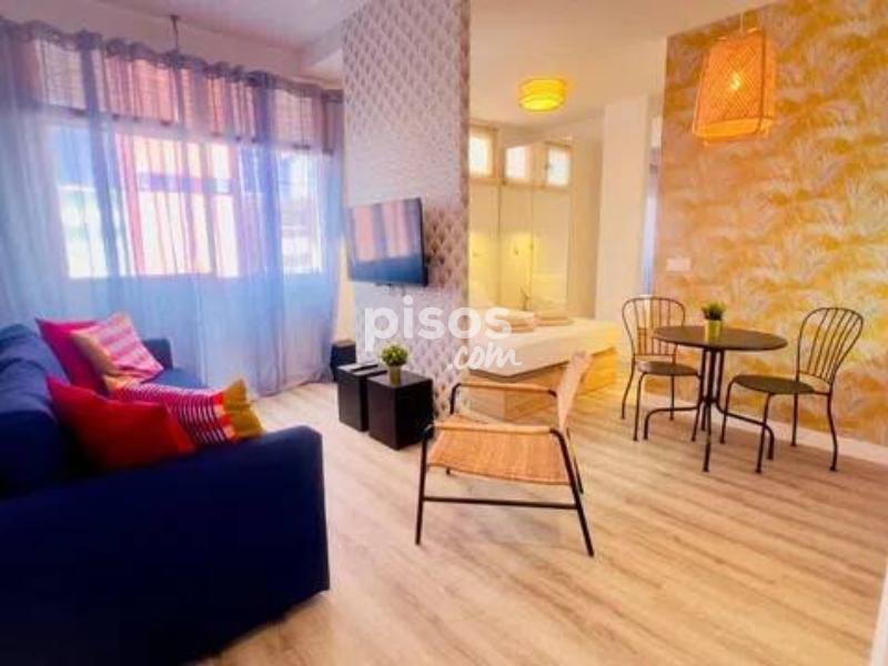 DISPONIBLE A PARTIR DE JULIO ¡Descubre tu nuevo hogar en este magnífico estudio, ideal para parejas o personas que buscan la comodidad y la modernidad en una ubicación inmejorable! Situado en la Calle Torres Quevedo 15, este estudio recién reformado y a estrenar es perfecto para un máximo de dos inquilinos. Características del Estudio: Cama de Matrimonio: Disfruta de un descanso reparador en una cama de 150 x 200 cm. Totalmente Reformado: Estudio renovado con materiales de alta calidad y un diseño moderno. Cocina Equipada: Cocina con todos los electrodomésticos necesarios, ideal para preparar tus platos favoritos. Mobiliario Moderno: Incluye un cómodo sofá y una Smart TV para tus momentos de ocio. Conectividad: WiFi incluido, para que siempre estés conectado. Exterior: Ventanas que permiten la entrada de luz natural, creando un ambiente luminoso y acogedor. Baño Completo: Con todas las comodidades necesarias para tu higiene y confort. Edificio con Ascensor: Facilita el acceso al estudio. Ubicación y Entorno: A 50 metros de la Playa Chica de Las Canteras: Disfruta de la playa y el mar a solo unos pasos de tu puerta. Supermercado Spar en los bajos del edificio: Todo lo que necesitas para tu día a día sin tener que desplazarte. Zona Ideal para Movilizarse sin Vehículo: Con todos los servicios y comodidades a tu alcance, incluyendo tiendas, restaurantes y transporte público. Este estudio es una oportunidad única para vivir en una de las mejores zonas de Las Palmas de Gran Canaria, con la playa prácticamente a tu puerta y todas las comodidades modernas que necesitas. ¡No pierdas la oportunidad de estrenar este maravilloso espacio! Precios según estancia: 1-3 meses 1100€ 4-6 meses 950€ 7-11 meses 750€ Se solicitara demostrar ingresos Se pedirá 1 mes de fianza, mes corriente y honorario según estancia No se admiten mascotas Para más información y concertar una visita, no dudes en contactarnos. ¡Esperamos darte la bienvenida a tu nuevo hogar!