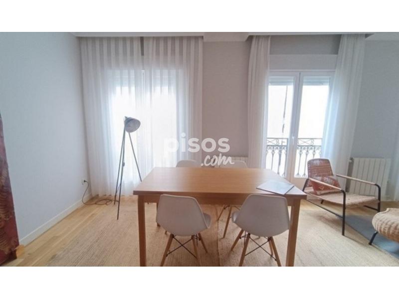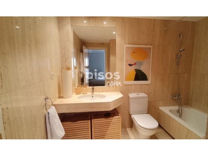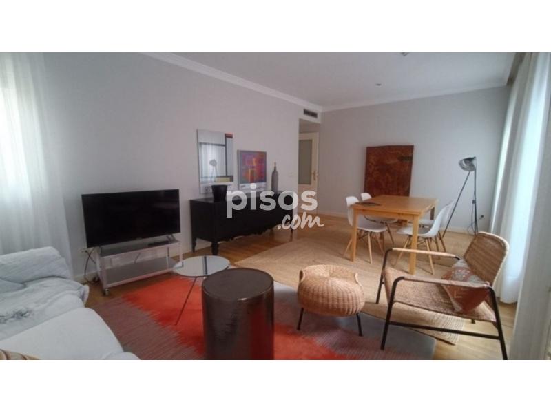 Piso reformado y amueblado con mucha luz y muy silencioso.Cuenta con un amplio salón comedor, con sofá de tres plazas, mesa extensible y mobiliario de diseño.Dos dormitorios, ambos amplios con cama doble, uno de ellos con baño en suite. Amplia cocina individua y totalmente equipada, con lavavajillas, horno, vitro, nevera, microondas, lavadora, mucho almacena y luz natural.Dos baños, ambos con bañera.Calefacción por gas y aire acondicionado por conducto en todas las estancias.