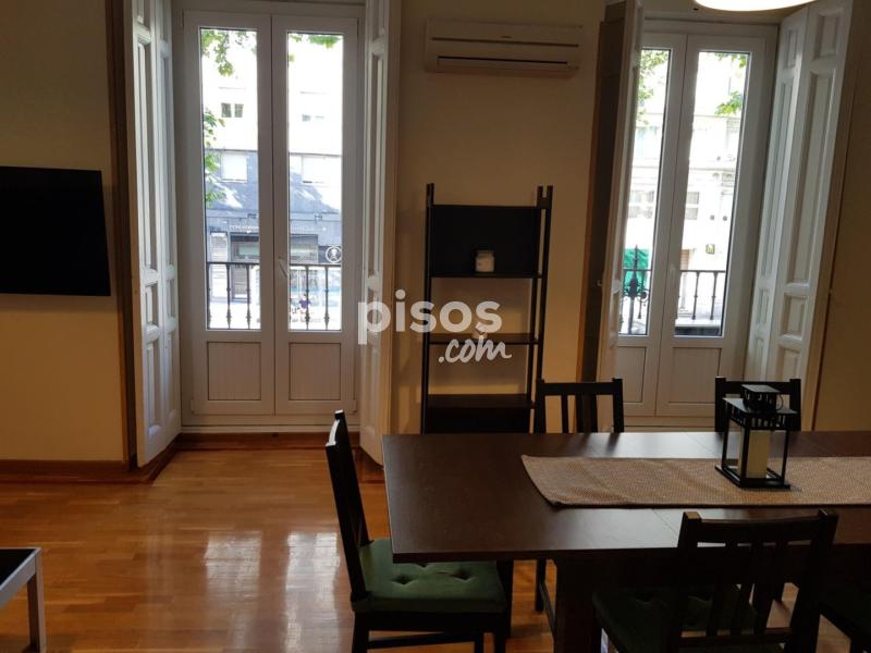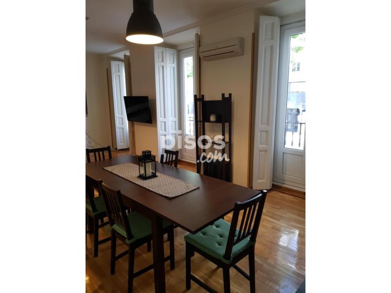 Estupendo piso muy amplio, verlo es querer quedarse con el piso. SOLO ALQUILER TEMPORAL GASTOS INCLUIDOS, mínimo 4 meses máximo 11 meses. Incluye gastos hasta 200 euros mensuales. Piso de 124m2, reformado, totalmente amueblado y equipado, con menaje y lencería, en 1º planta exterior, muy luminoso, 4 dormitorios de similar tamaño con cama doble escritorio y armario, salón muy amplio con 3 balcones a la calle, excelente vista, cocina grande independiente totalmente equipada con electrodomésticos y menaje del hogar, 1 baño completo, calefacción y agua caliente individual por gas natural, aire acondicionado en todas las estancias, suelos de parquet, ascensor. Excelente ubicación, metro Atocha, Paseo del Prado, cerca de Museos y Parque del Retiro, autobuses 6, 26 y 32. Se puede visitar con cita previa y hacer videollamadas. Condiciones: 1 mes de fianza + 1 mes de alquiler + 1 mes de SGI mas IVA. Indispensable demostrar solvencia económica.