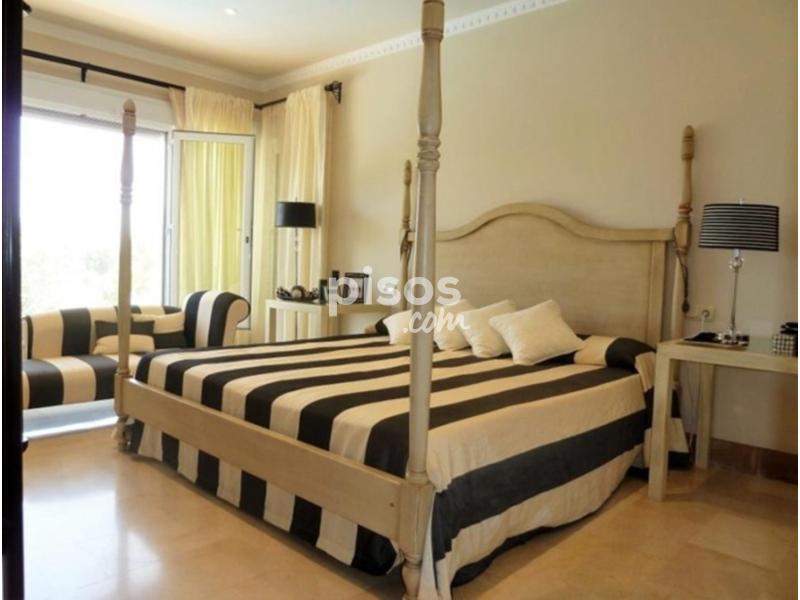 La suite principal ofrece vistas al campo de golf y a la piscina, además de contar con un baño en suite y un vestidor que maximiza el espacio. Todos los dormitorios están dotados de baño privado, garantizando comodidad y privacidad. Los acabados son de alta calidad, con cerramientos de climalit y portaje de madera maciza, mientras que el suelo radiante proporciona un ambiente cálido y acogedor.