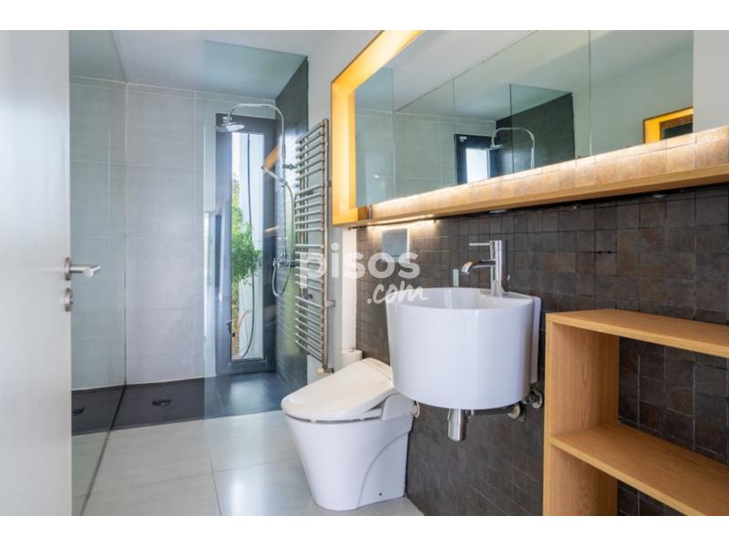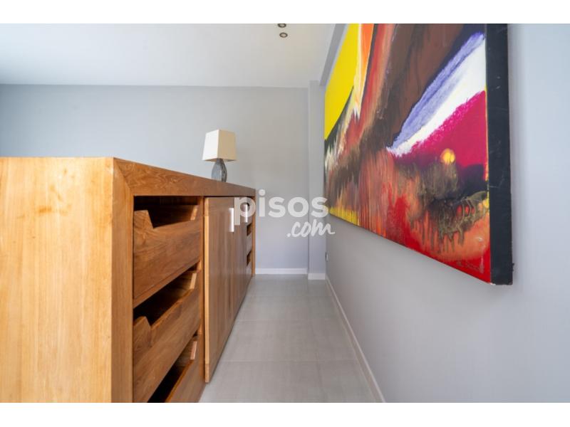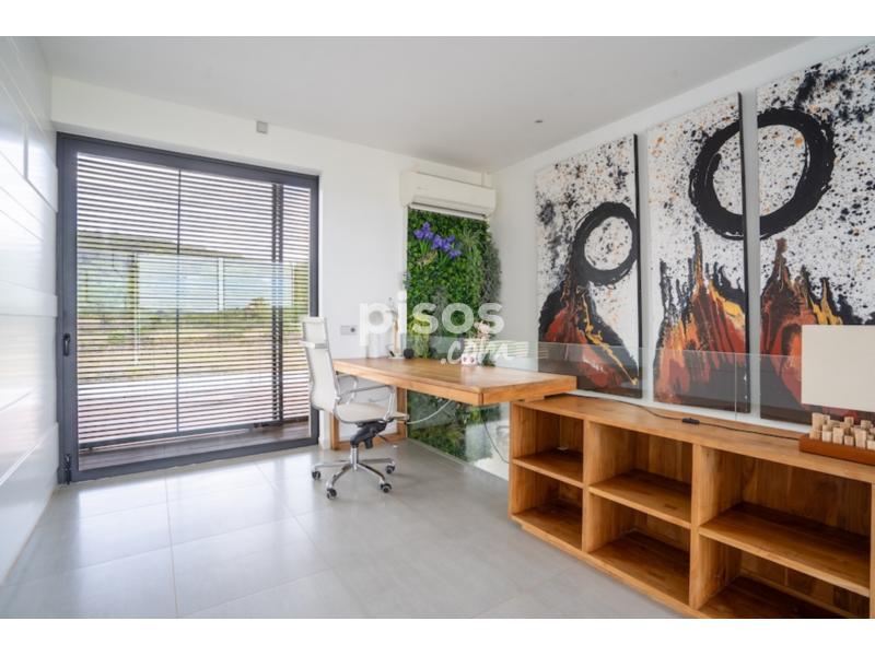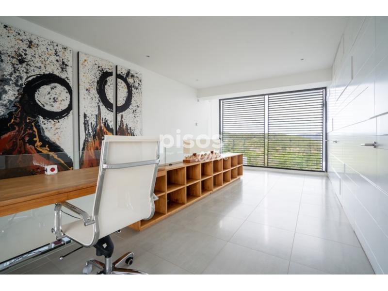En la planta superior, la suite principal cuenta con baño privado y terraza propia. Dos habitaciones adicionales, ambas con terrazas privadas, comparten un baño completo. Además, hay una luminosa zona de trabajo con una gran mesa de madera, perfecta para despacho o estudio.