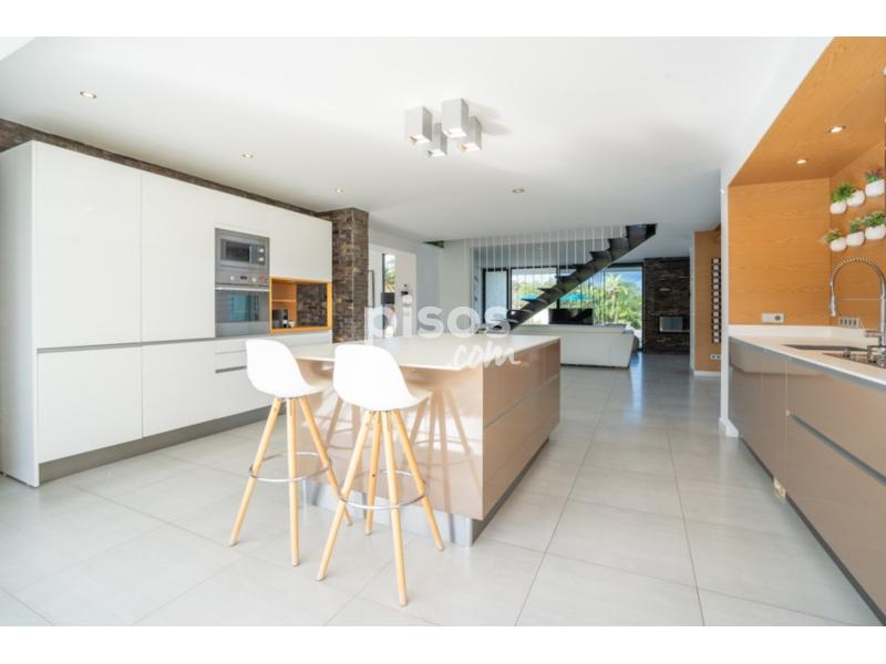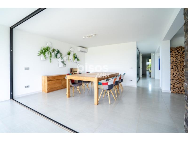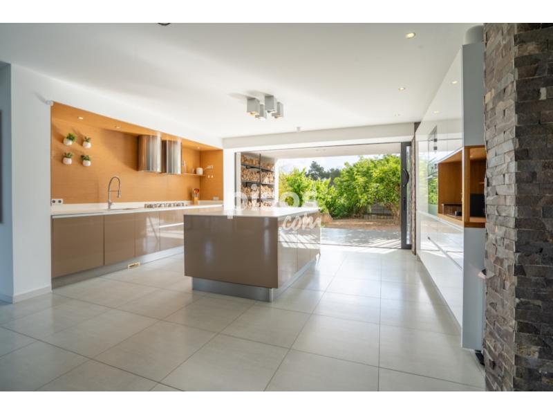 La vivienda, con 495 m² construidos, se distribuye en dos plantas y ofrece cuatro habitaciones y tres baños. En la planta principal, accesible desde la cocina o desde la entrada principal, encontramos un amplio salón con chimenea y salida directa al jardÃn, un comedor con vistas a la piscina y una cocina espaciosa con isla central. También dispone de lavadero, una habitación con salida a la terraza y un baño completo para invitados. Esta planta es ideal para personas con movilidad reducida.