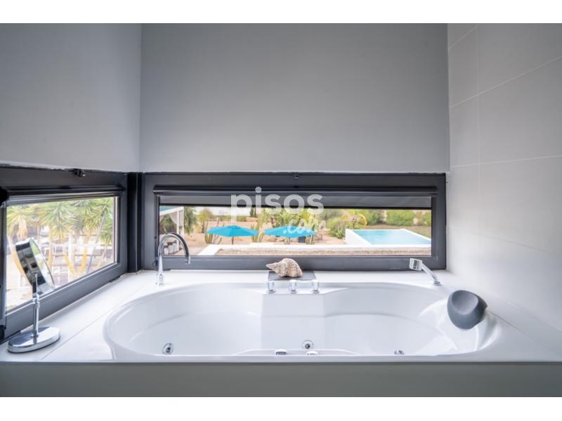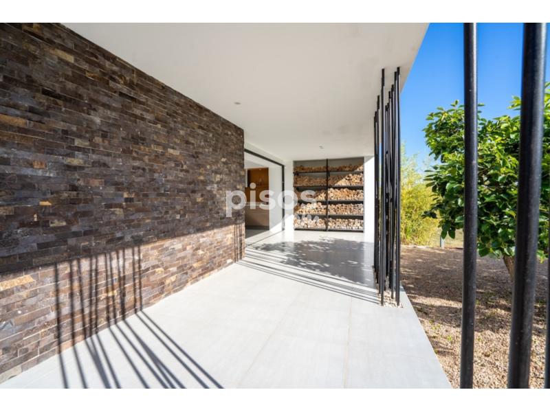 El exterior ofrece terrazas cubiertas, zona chill out, piscina rectangular de 10 x 4,4 m, comedor al aire libre con barbacoa y dos accesos independientes: uno con portón automático y aparcamiento cubierto para dos coches, y otro con espacio para varios vehÃculos o camiones.