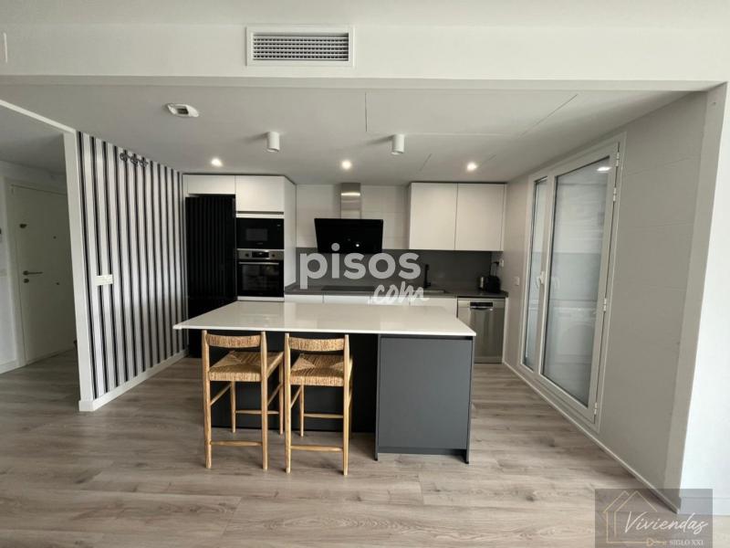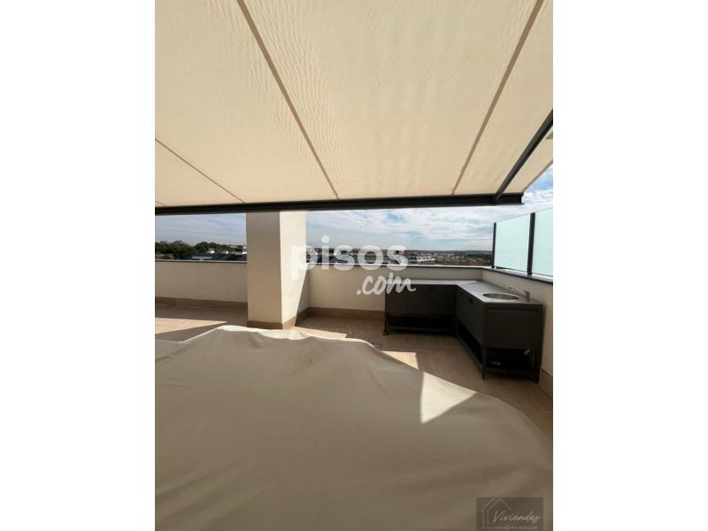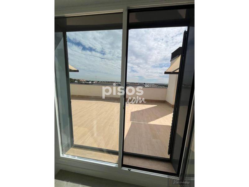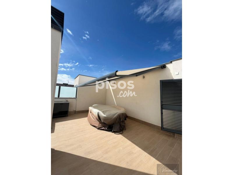 Viviendas siglo xxi alquila precioso atico de 177m2 , amplio hall de entrada , salón comedor con la cocina integrada totalmente amueblada con electrodomesticos y con salida directa a una terraza en planta , 3 dormitorios , 2 baños completos , uno de ellos el suitte , armarios empotrados totalmente vestidos, aire acondicionado canalizado por conductos , carpinteria interior lacada en blanco , toldos electricos en las dos terrazas la terraza atico es de 70m2 acondicionada con pila y armarios para el menaje de primavera - verano , la vivienda dispone de dos plazas de garaje , cuarto trastero , urbanización muy tranquila con piscina , sala multiusos y cuarto para bicicletas, disponible ya , mejor ver , no dude en concertar una visita .Precio:2.400,00€