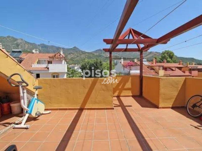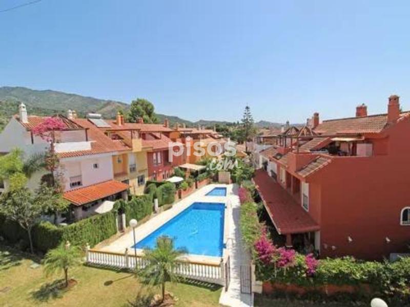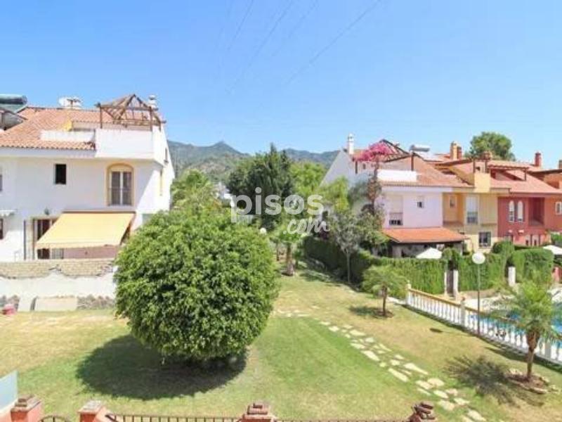 Casa adosada en Villas de Marbella a 300 metros de estación de autobuses, andando a todos los servicios, cerca del colegio La Latina. La propiedad esta distribuida en 3 plantas: Planta baja: hall de entrada, cocina totalmente equipada, salón con salida a la terraza con la zona de barbacoa y acceso al jardín de la comunidad, trastero y aseo de invitados. Planta primera: 3 dormitorios, uno de ellos con baño en suite y 2 dormitorios compartiendo el cuarto de bño. Planta alta: el 4 dormitorio, cuarto de baño y acceso al solarium de unos 15 m2. La casa tiene parking para 1 coche. Piscina comunitaria.