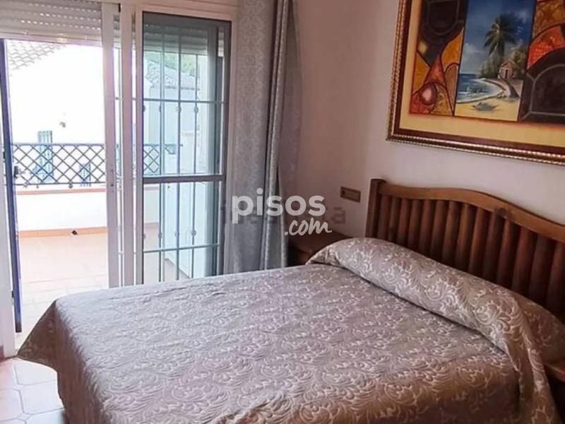**Chalet Adosado en Alquiler en Nerja - ¡Tu Nuevo Hogar Te Espera! ** Descubre este encantador chalet adosado en alquiler de larga temporada, ideal para quienes buscan comodidad y estilo. Con una superficie construida de 140 m², esta obra seminueva te ofrece un espacio acogedor distribuido en dos plantas. La planta baja cuenta con un pasillo central que te lleva a un dormitorio equipado y amueblado, junto a un baño completo con plato de ducha y armario empotrado. Además, un segundo dormitorio amplio y luminoso con vestidor te brinda el espacio perfecto para descansar. En la planta superior, disfruta de un salón comedor amplio y luminoso, totalmente equipado, donde el aire acondicionado garantiza tu confort. Desde aquí, accede a una terraza con vistas al mar, ideal para disfrutar de atardeceres inolvidables. La barbacoa de piedra es perfecta para reuniones familiares y amigos. La comunidad ofrece una piscina refrescante y una plaza de parking común pero privada. Ubicado a escasos minutos del centro de Nerja y de la famosa playa de Burriana, este chalet adosado es la opción perfecta para quienes desean vivir cerca del mar. Presentación de contratos y nóminas requerida. No se aceptan mascotas. ¡No pierdas la oportunidad de hacer de este lugar tu nuevo hogar!
