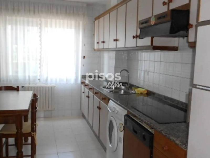 Se alquila piso de 3 habitaciones en Salgueiriños, Santiago de Compostela. Situado a 900m de la Xunta de Galicia, en San Caetano. Piso con ascensor amueblado de 90 metros. Dispone de 3 habitaciones, 2 baños completos, cocina equipada con vitrocerámica, horno, microondas, lavavajillas, nevera y lavadora, salón con galeria cerrada. Totalmente amueblado excepto sofás en el salón. Plaza de garaje y trastero incluido en el precio. Calefacción a gasoleo. Piso exterior