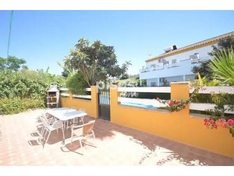 Se alquila sólo desde el 26 de abril a mediados de mayo del 2026. Esta es una vivienda adosada distribuida en 2 plantas, con jardín y piscina compartidas. En su planta baja se encuentra salón-comedor-cocina (con cama individual) y aseo con ducha; en la planta superior hay 3 habitaciones: 2 con cama matrimonio más individual en 1 de ellas, y cuádruple (literas), y baño. Terraza delantera y trasera con barbacoa, y parking privado para 3-4 coches. Está situada a unos minutos de la playa de Fuente del Gallo y Fontanilla. La zona de piscina y jardín ha sido ampliada, para el disfrute de todos