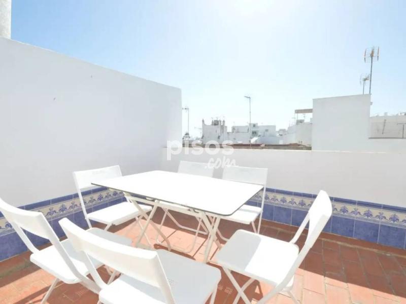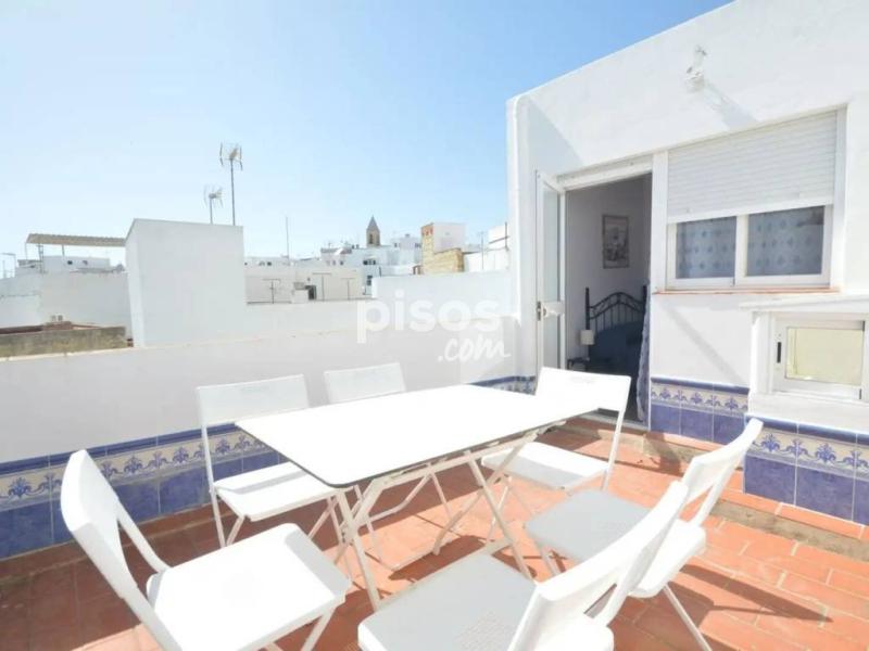 Disponible solo del 9 al 31 de mayo. Si te interesa manda mensaje escrito por email o whatsapp en el 744717008 porque lo atiendo mejor. Este apartamento se distribuye en 2 plantas. Dispone de un salón-comedor con cocina americana, 2 baños con ducha y 3 dormitorios 1 con 2 camas y 2 con cama de matrimonio. Desde uno de los dormitorios se puede acceder directamente a una pequeña azotea privada, desde donde disfrutará de una vista maravillosa al mar. Este bonito apartamento se encuentra en el casco antiguo de Conil, en uno de los callejones típicos, cerca de la puerta de la ciudad. La playa está a unos 10 minutos andando Para ver mas casas www.casasdeconil.com