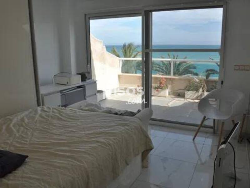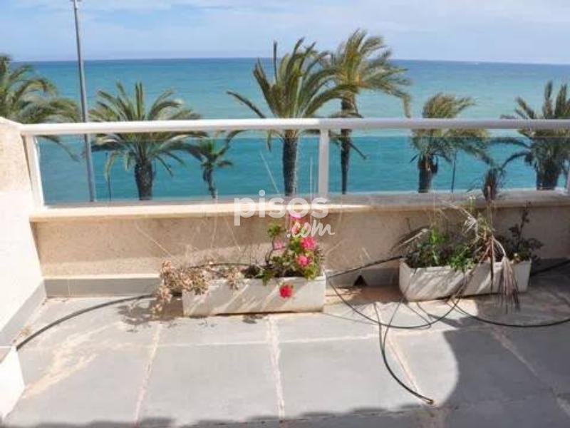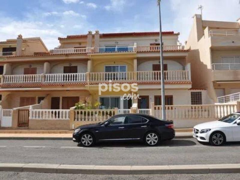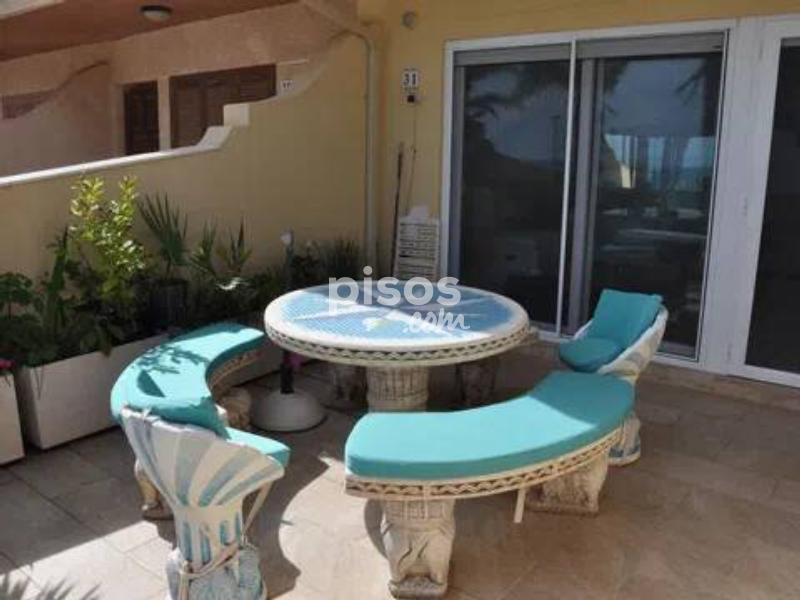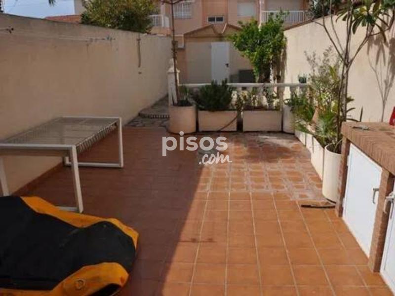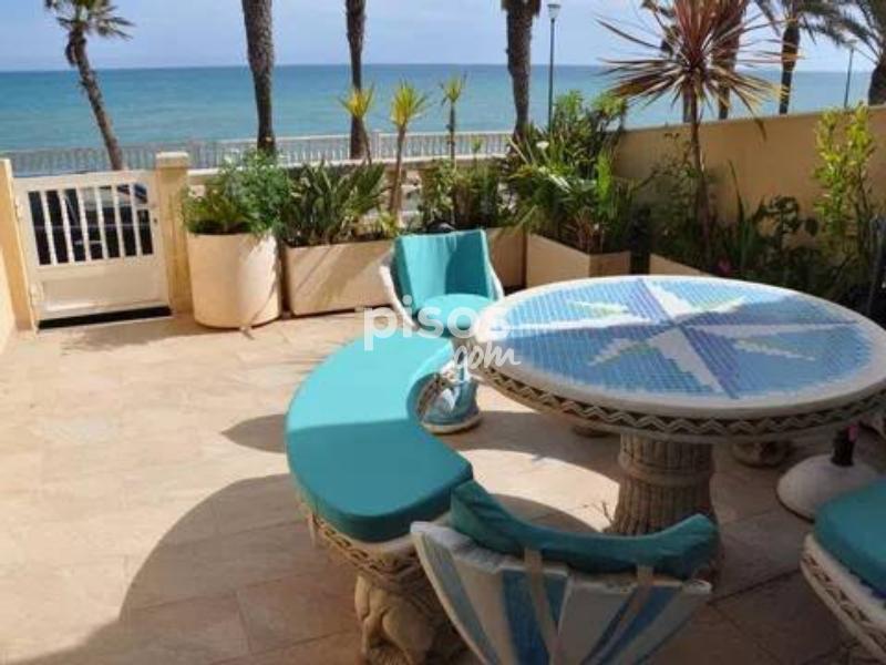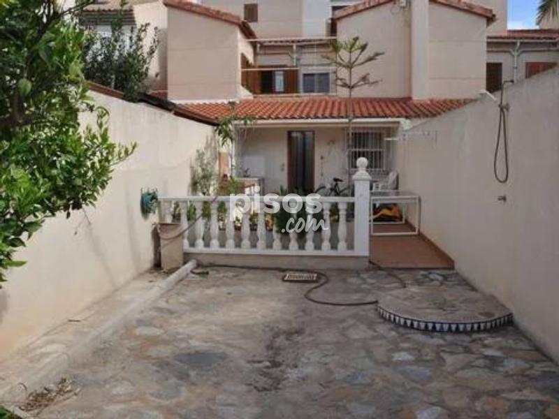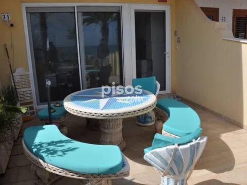 Se alquila para larga estancia esta impresionante vivienda adosada en primera linea en Torre de la Horadada. En la entrada a la parcela se encuentra el porche soleado con vistas al paseo y al mar, en la entrada a la vivienda se encuentra un amplio salon, un baño y la cocina independiente con salida a una amplia parcela de setenta metros cuadrados. En la primera planta se encuentran tres dormitorios y un baño completo. En la segunda planta se encuentra un dormitorio con amplio balcon y vistas espectaculares. La vivienda cuenta con un garaje subterraneo.