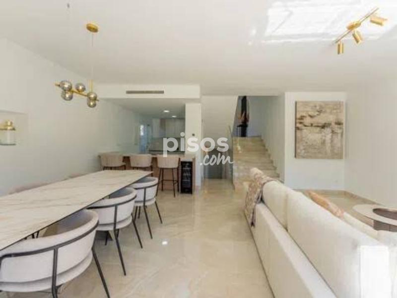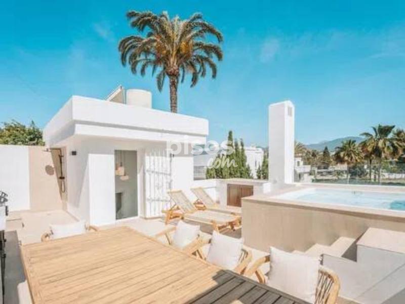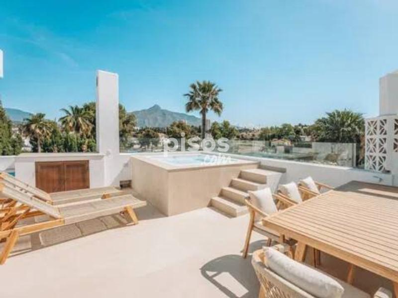 La propiedad está disponible para alquilar a 16.500 EUR por mes, ofreciendo un ambiente de vida cómodo y bien equipado durante la temporada de verano. Está disponible exclusivamente para junio, julio y agosto, con una estancia mínima de dos meses. Se aplica un descuento al reservar el período completo de tres meses. Esta exquisita casa adosada, situada en la prestigiosa zona de Nueva Andalucía, Marbella, ofrece una oportunidad única para vivir de lujo. Como una de las propiedades más significativas en la Urbanización exclusiva Los Sultans, esta residencia es un raro hallazgo, con sólo 12 casas adosadas en la comunidad y nunca antes disponible para la venta. Ubicado dentro de una comunidad segura y cerrada, la propiedad cuenta con una ubicación triple-A con acceso inmediato al nuevo paseo que conduce directamente a Puerto Banus. Está convenientemente situado junto a la glorieta de carteles de Marbella y la famosa urbanización La Mastranza. La casa cuenta con un generoso 301m2, con 201m2 de espacio interior y una terraza de 100m2, que ofrece una amplia habitación para la relajación y el entretenimiento. Cuenta con cuatro amplios dormitorios, incluyendo un lujoso baño en suite, dos baños adicionales, y un aseo de invitados. El interior está elegantemente equipado con suelos de mármol, armarios empotrados y persianas eléctricas, garantizando estilo y comodidad. La cocina totalmente equipada y las zonas de estar climatizadas se complementan con una sala de cine y una sala de juegos, que ofrecen una combinación perfecta de ocio y funcionalidad. Vida al aire libre es igualmente impresionante, con una piscina privada y una zona de barbacoa en la terraza, ideal para disfrutar de las impresionantes vistas de la montaña La Concha. El jardín comunitario y el garaje aumentan aún más el atractivo de la propiedad, mientras que el solárium y la terraza ofrecen espacios adicionales para relajarse y remojar en el clima mediterráneo. La casa está totalmente amueblada y en excelente estado. Recientemente ha sido renovado y reformado a los más altos estándares. Estratégicamente ubicado, la propiedad está a poca distancia de Centro Plaza y Puerto Banus y está cerca de las ciudades, una variedad de am incluyendo opciones de comida de primera categoría, tiendas, escuelas y campos de golf. La proximidad al mar, la playa y los enlaces de transporte, así como la vibrante ciudad y el puerto, hacen de este adosado una lujosa residencia y una inversión sólida con excelente potencial de retorno. Esta es una oportunidad única para poseer un pedazo de bienes raíces en una de las zonas más buscadas de Marbella.