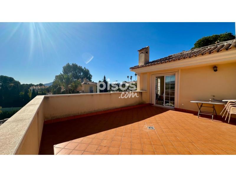 En su exterior se encuentra una parcela generosa de 400 m2 rodeada por hermosos árboles que brindan privacidad. Además, podrás relajarte en la piscina privada o compartir momentos inolvidables en la terraza al aire libre mientras disfrutas del clima mediterráneo.
