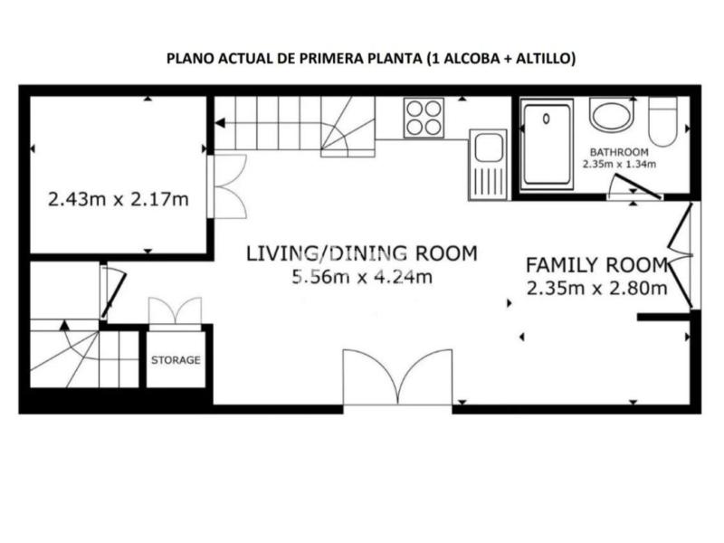 Cada planta cuenta con 1 dormitorio (2 habitaciones en total), 1 baño en cada planta (2 baños), además de un altillo con cama individual en la primera planta. Esta propiedad ofrece el espacio perfecto para una pareja, una pequeña familia o para trabajadores.