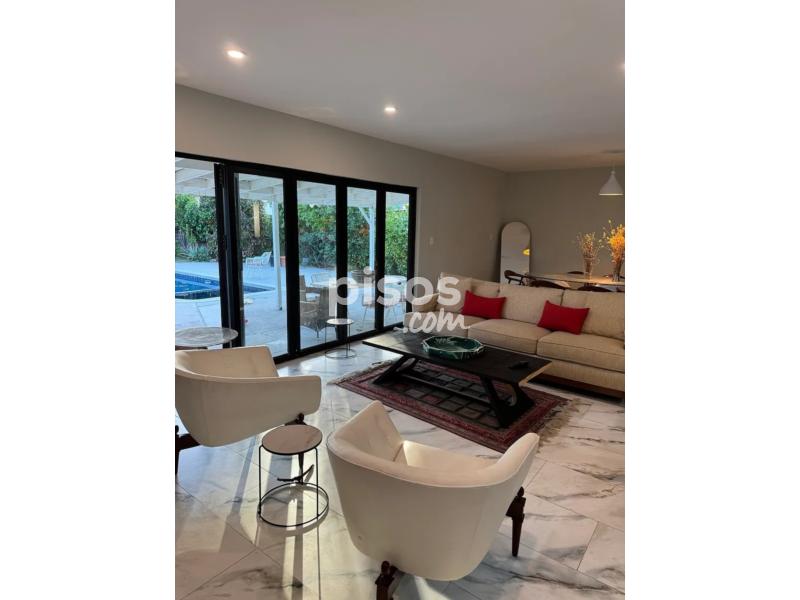 Esta casa independiente ofrece una superficie construida de 134 metros cuadrados, distribuida en dos habitaciones y dos baños, presentando un estado de conservación bueno. La propiedad, con una antigüedad entre 30 y 50 años, cuenta con detalles de seguridad como puerta blindada y sistema de seguridad instalado. La vivienda está completamente amueblada y dispone de una cocina equipada, aire acondicionado frío/calor, lavadero, y garaje privado para un vehículo.