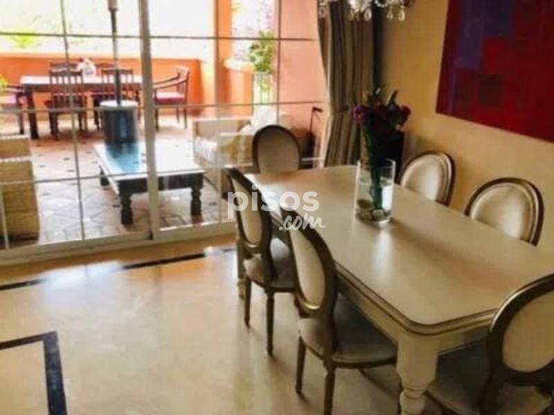 Se alquila larga temporada el duplex en Nueva Andalucia En la primera planta: cocina totalmente equipada y amueblada, salón - comedor con acceso a la terraza con jardín, dos dormitorios, dos cuartos de baños En la planta de abajo: un dormitorio, un cuarto de baño Piscina comunitaria Plaza de aparcamiento Esta situado cerca de las tiendas, cafeterías, restaurantes, comercios Es un sitio ideal y cómodo para vivir! Vísitalo!